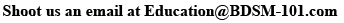 Did you attended one of our BDSM-101 classes and have a follow up question? Have a suggestion for something you think we should add to this web site? Want to suggest a great web site you want us to mention? Want to talk to us about doing a class for your group?
